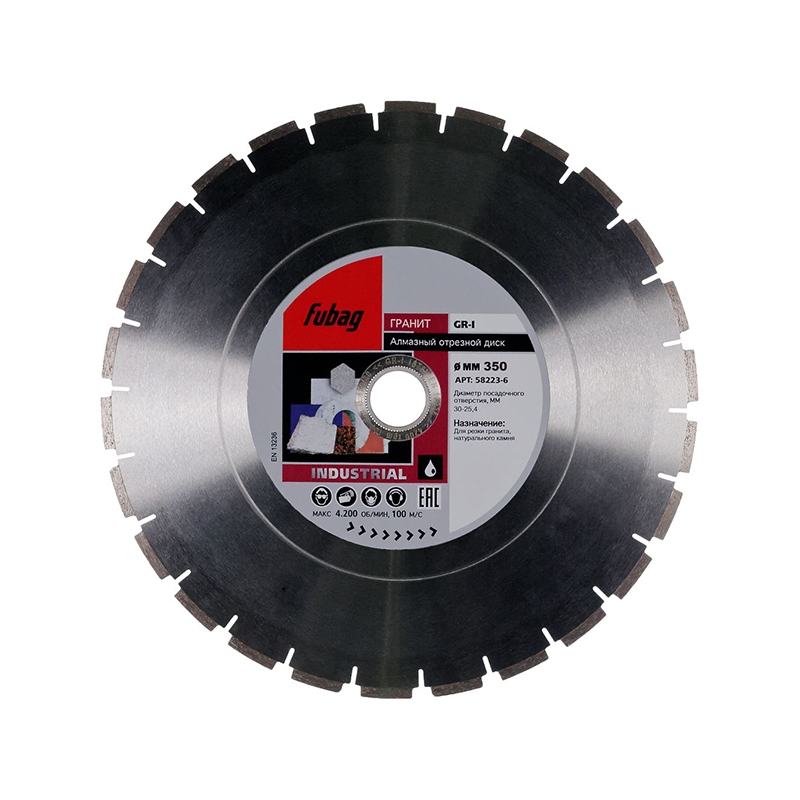Характеристики Алмазный отрезной диск FUBAG GR-I /камень/сегмент._ диам. 350/30-25.4 мм по граниту