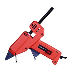 Термоклеевой пистолет – инструмент для создания неразъемных соединений при помощи термоклея. В процессе работы нагревательный элемент плавит клеевой стержень, после чего расплавленный клей поступает через сопло на склеиваемую поверхность. Контроль количества действующего вещества проводится плавным нажатием курка, установленного на ручке пистолета.