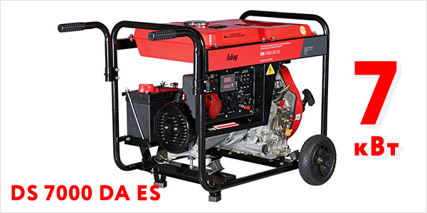 Трёхфазная установка DS 7000 в базовой комплектации оснащается электростартером. Возможна эксплуатация дизельного генератора с автозапуском — предусмотрен разъём для подключения автоматики. Оборудование поставляется со встроенным стабилизатором и тремя розетками (на 230 В два гнезда и одно на 400 В).
